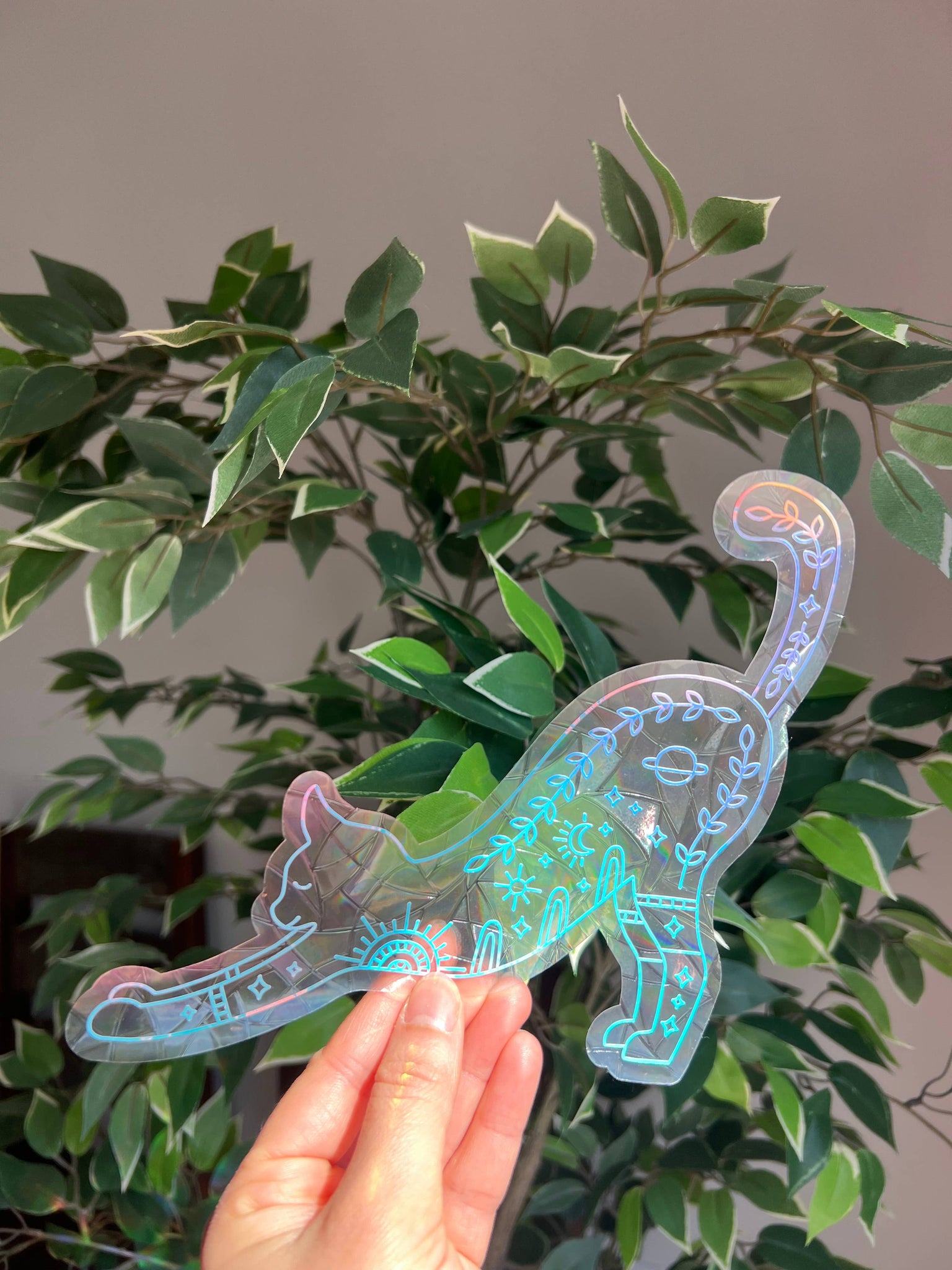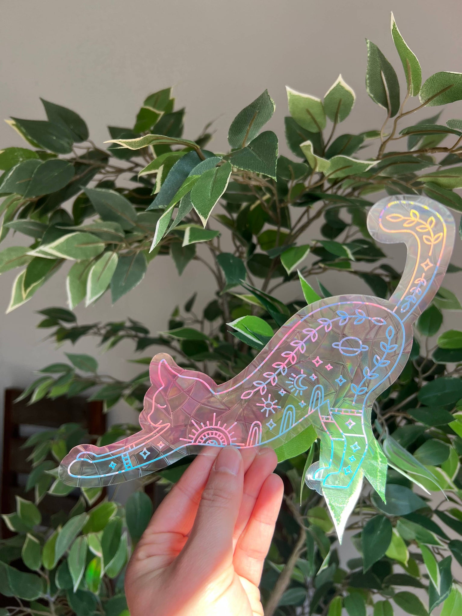 Stretching Cat suncatcher sticker, window decal, window sticker, window film, Rainbow maker, celestial sticker, magical sticker, car decal, fall decor